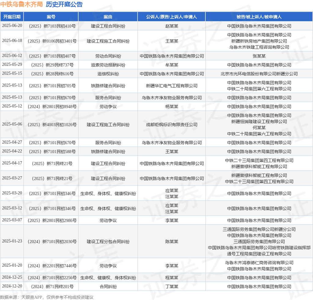 本站消息,根据天眼查APP显示,近日公布了一则中国铁路乌鲁木齐局集团有限公司作为被告/被上诉人的开庭公告,详细内容如下: